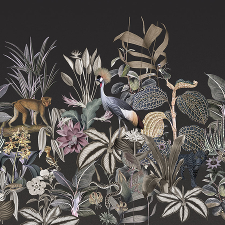 Dzsungel hangulat, pálmafa és állat mintás fali panel. 210 cm széles (3 x 70 cm), 280 cm magas. Eijffinger Skin 300621 poszter.